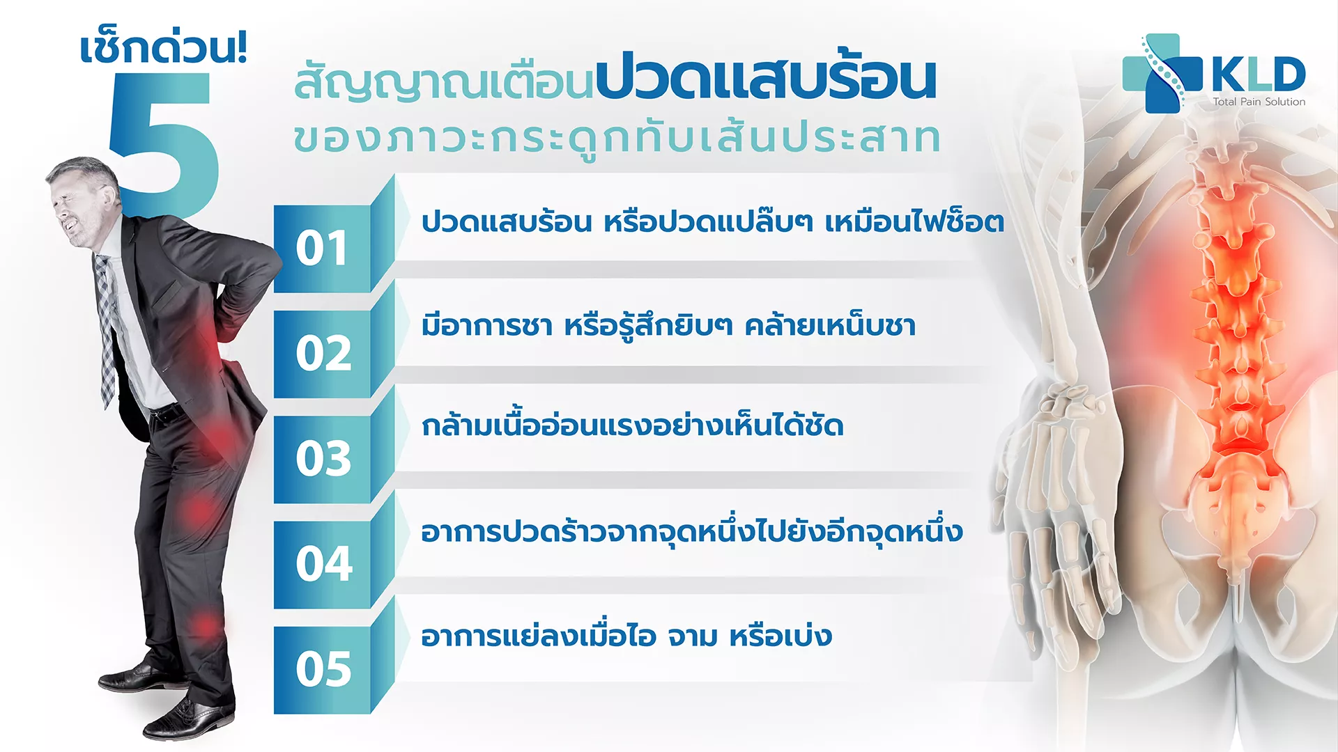 เคยไหม? จู่ๆ ก็รู้สึกปวดแสบร้อน ปวดแปล๊บๆ เหมือนไฟช็อต หรือมีอาการชาตามร่างกาย คุณอย่าคิดว่าเป็นเรื่องเล็ก! เพราะนี่อาจเป็นสัญญาณอันตรายของการ "รบกวนของเส้นประสาท" ซึ่งเป็นผลจาก "กระดูกทับเส้นประสาท" ที่คุณไม่ควรมองข้ามเด็ดขาด ซึ่งการละเลยอาจนำไปสู่ปัญหาเรื้อรังที่ส่งผลกระทบต่อคุณภาพชีวิตในระยะยาวได้