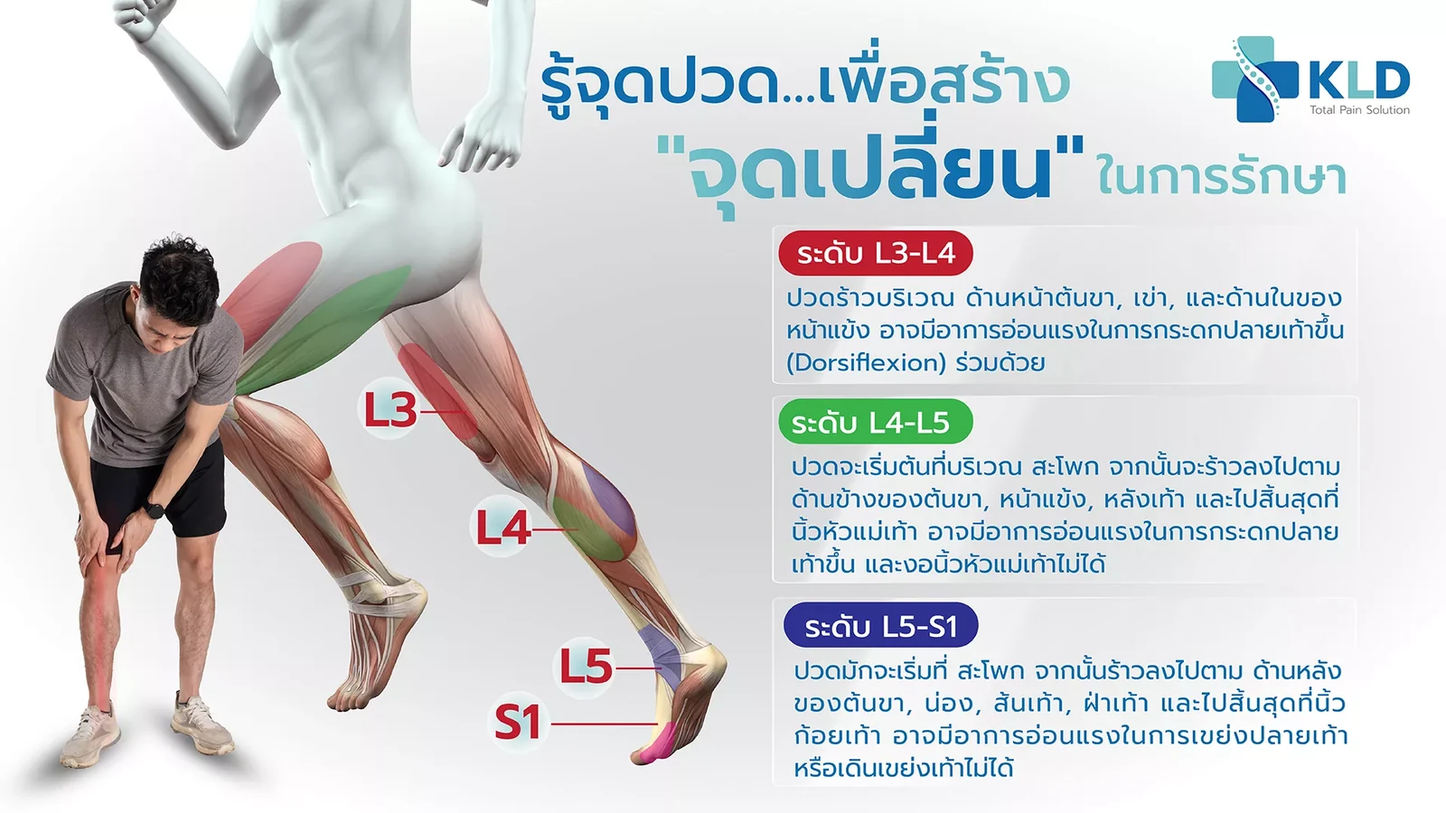 อย่าปล่อยให้อาการปวดร้าวลงขา มาจำกัดการใช้ชีวิตของคุณ เพราะเมื่อคุณ "รู้จุดปวด" ที่แท้จริง คุณก็จะสามารถก้าวสู่ "จุดเปลี่ยน" ที่จะนำพาชีวิตที่ไร้ความเจ็บปวดกลับคืนมาได้