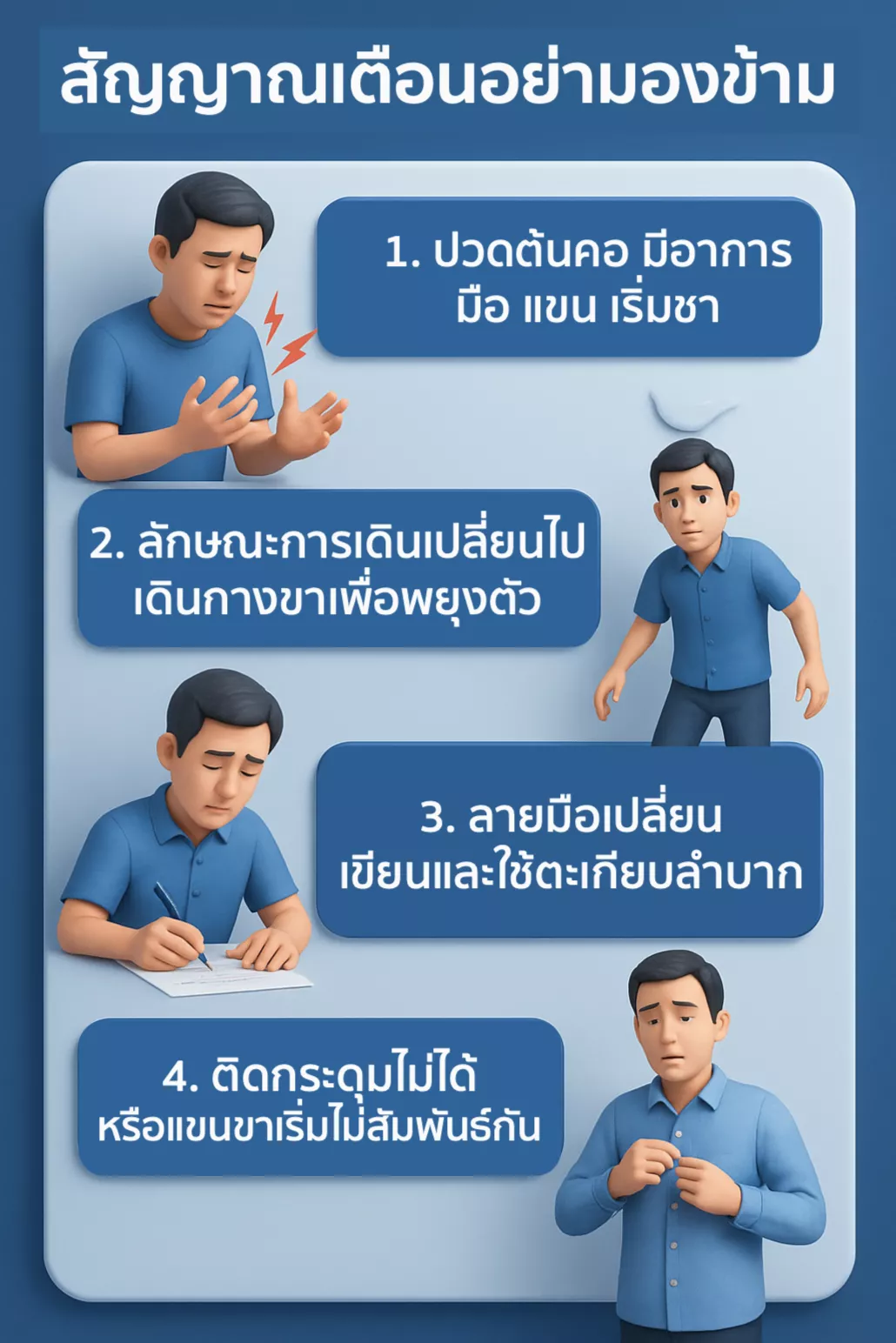 อย่ารอให้สายเกินไป หากคุณรู้สึก “ชาแขน เดินเซ หรือขยับตัวยาก” อย่าเพิกเฉยต่อสัญญาณของร่างกาย เพราะ “คอเสื่อม” ที่ถูกละเลย อาจเปลี่ยนชีวิตคุณไปตลอดกาล..